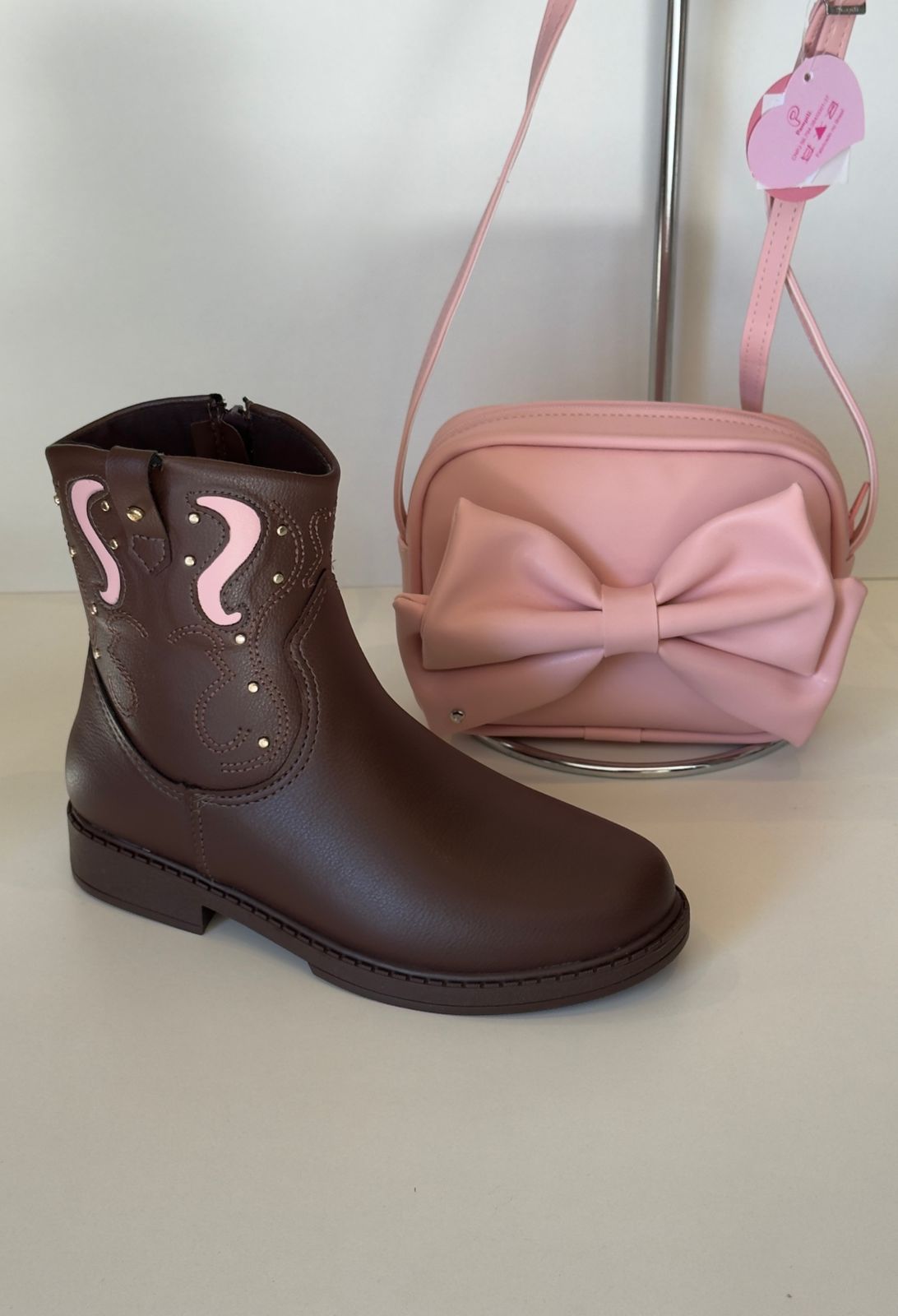 Detalhes decorativos em rosa e tachas