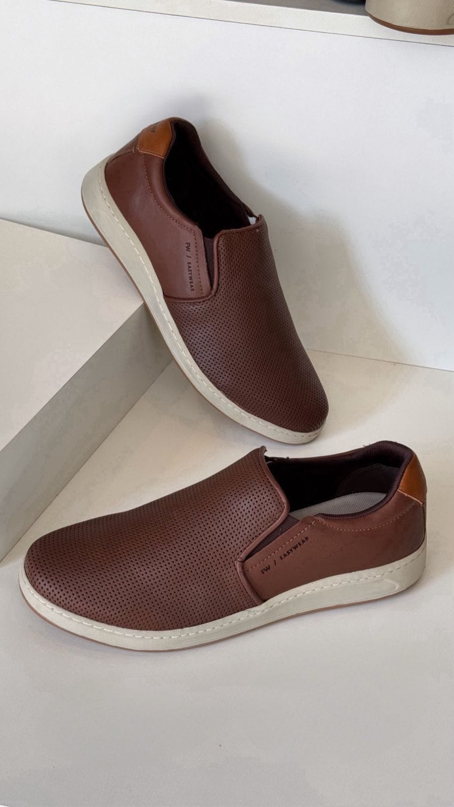 Couro Legítimo Microperfurado: O cabedal em couro de alta qualidade possui perfurações estratégicas que, além de agregarem um visual sofisticado, garantem uma ventilação constante, mantendo seus pés frescos e secos durante todo o dia.