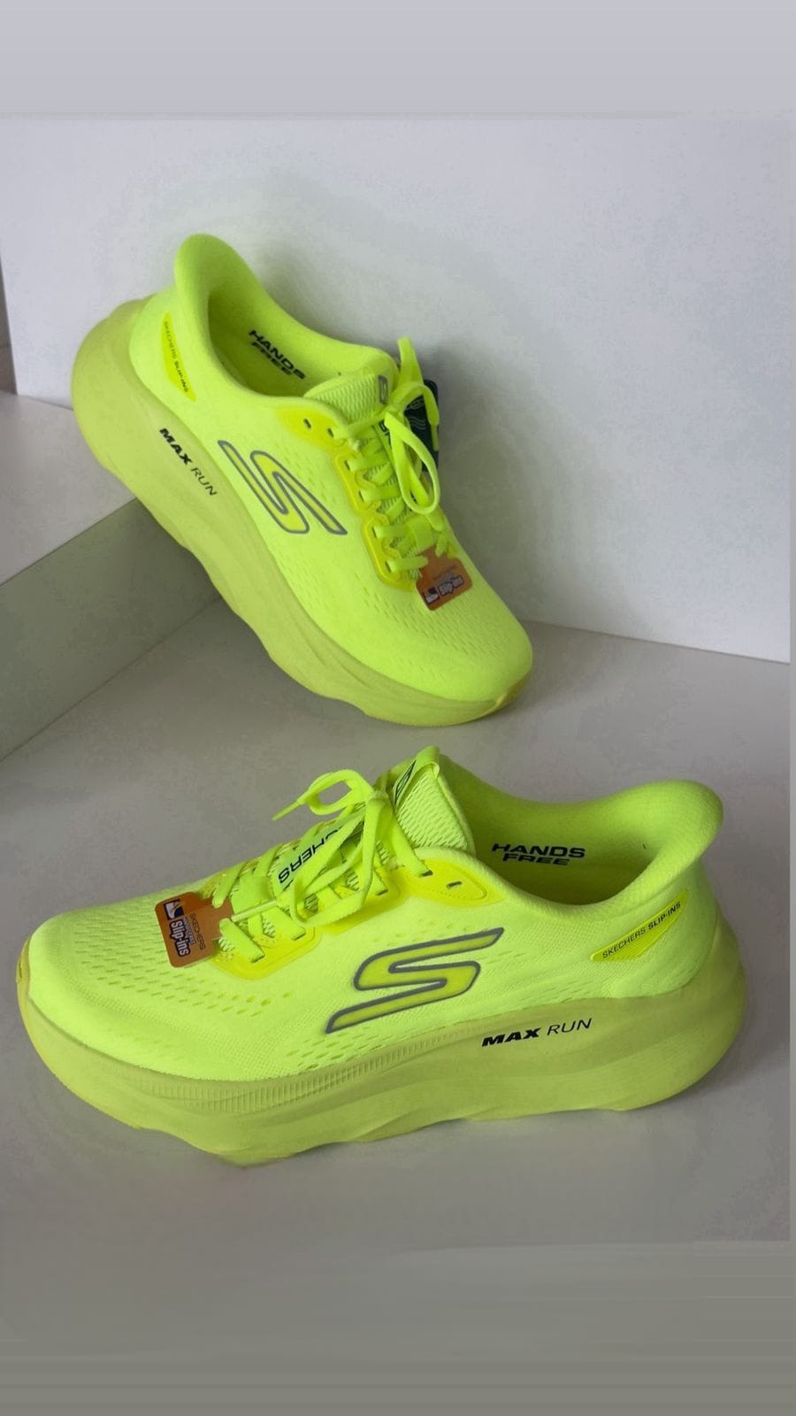 Tênis Skechers Feminino Hands Free Slip-ins: Max Run – Amarelo Neon
